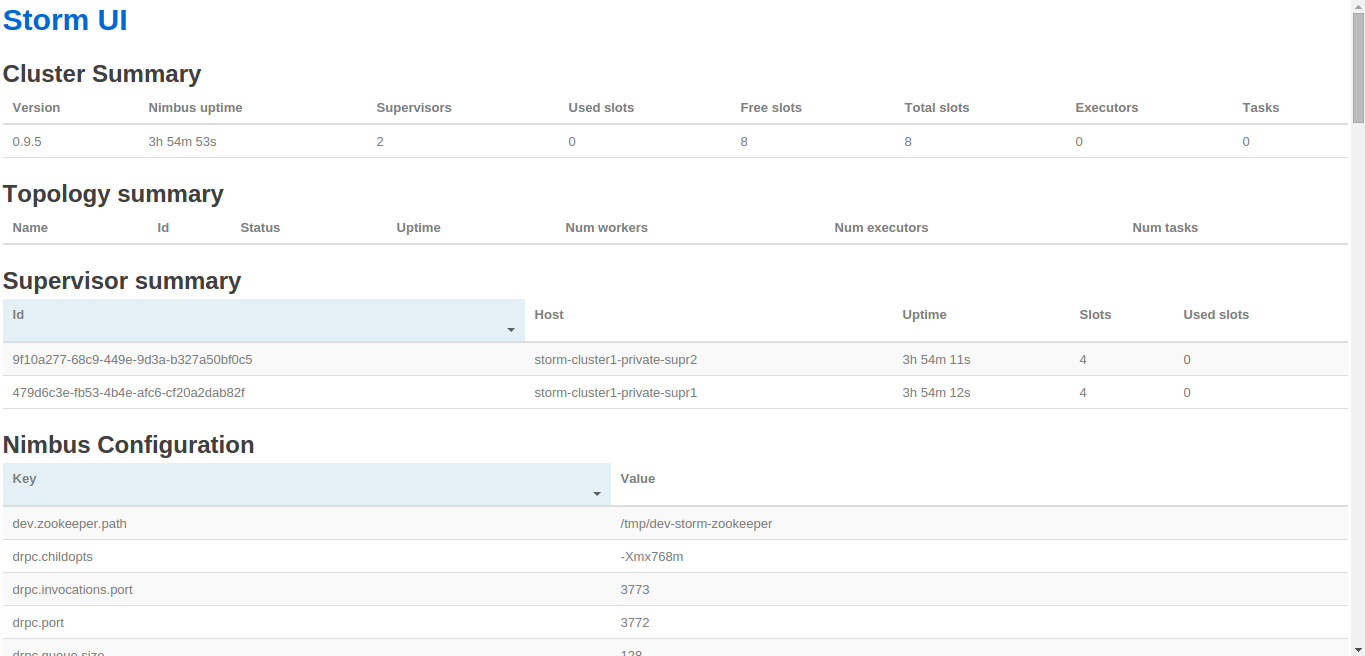 This guide will explain how to configure a working Storm cluster and its Zookeeper nodes, but it will not provide information on how to develop custom topologies for data processing. For more information on creating and deploying Storm topologies, see the Apache Storm tutorial.