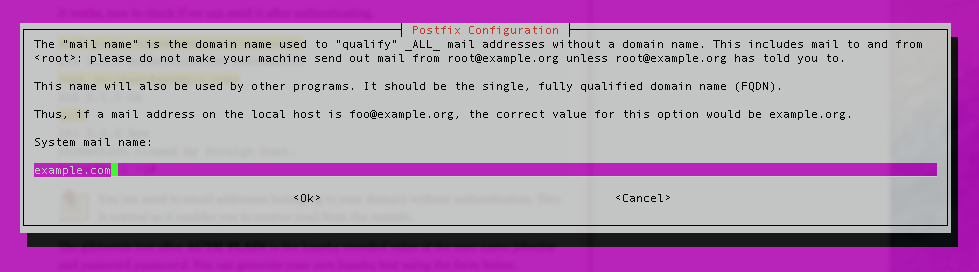 authorization plugin by default. This authorization scheme allows you to log in to the database’s root user as long as you are connecting from the Linux root user on localhost.When prompted, select Internet Site as the type of mail server the Postfix installer should configure. The System Mail Name should be the FQDN.